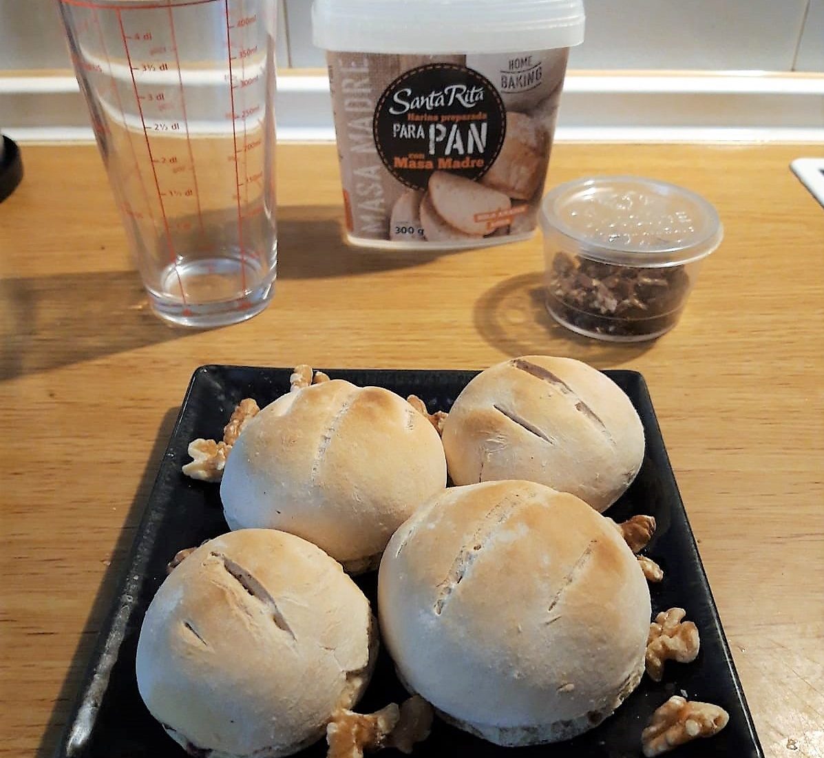 - Preparar al gusto. Nosotros hicimos seis panecillos que rellenamos de pasas, nueces y chocolate.