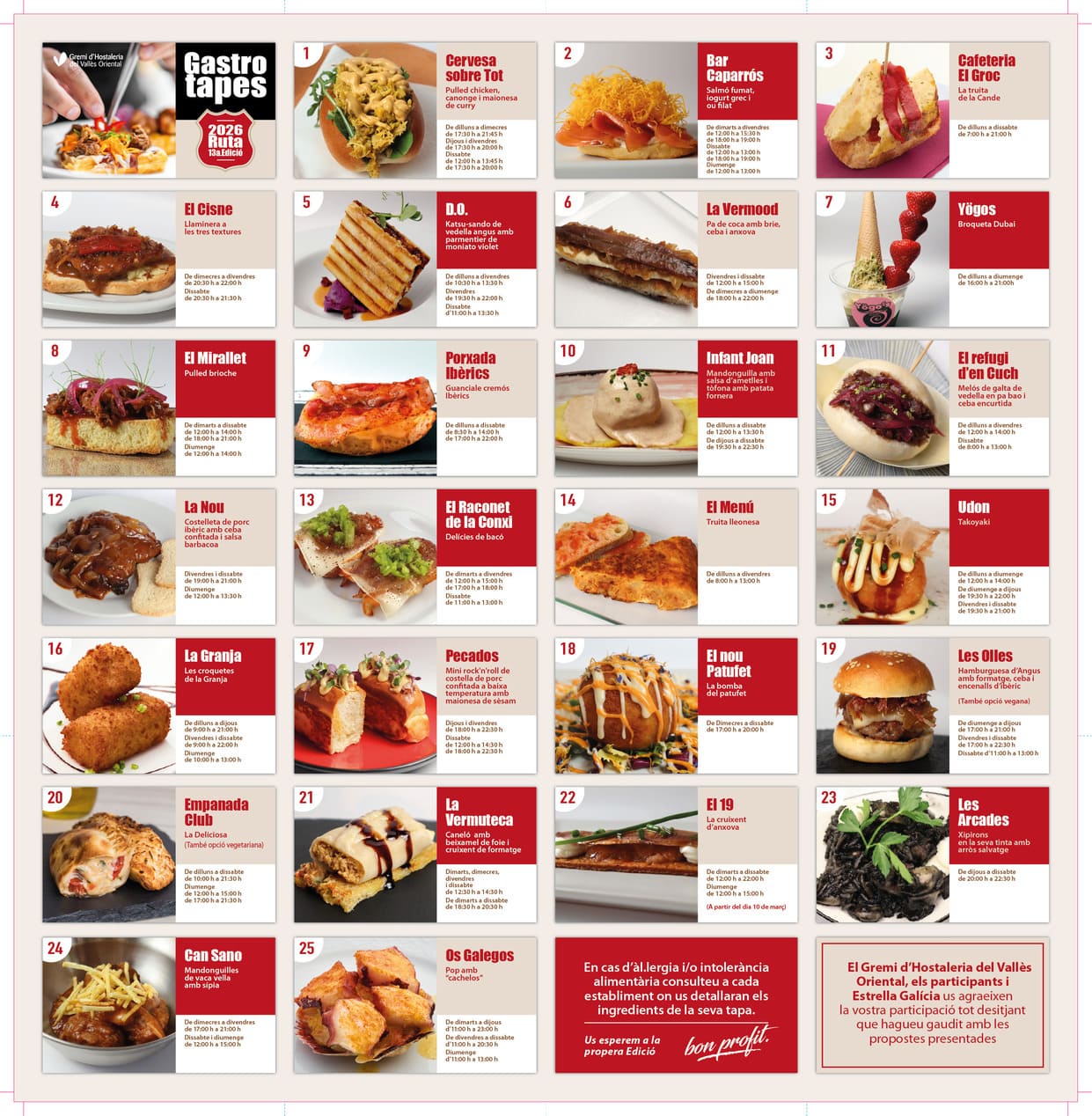 En la siguiente imagen podéis consultar los restaurantes adheridos al Gastrotapes Granollers 2026. Tambien podeis encontrar la información en el código QR de la imagen anterior.